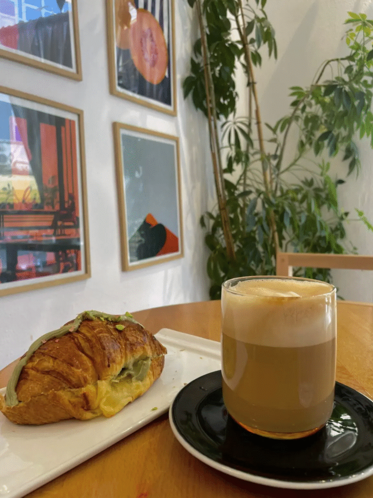 Stolia Coffee House & Brunch.- This place is Perfect for a morning coffee or brunch. offers an unforgettable experience with its pistachio croissant and latte. The outdoor seating area is so cute with its string lights and plants.